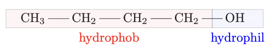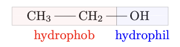 Ist die Kohlenstoffkette nur sehr klein, so hat sie nur einen geringen Einfluss auf das Lö̈sungsverhalten. Das Lösungsverhalten wird durch die hydrophile Hydroxygruppe bestimmt. Kurzkettige Alkohole (Methanol, Ethanol, Propanol) sind in allen Verhältnissen in Wasser löslich.